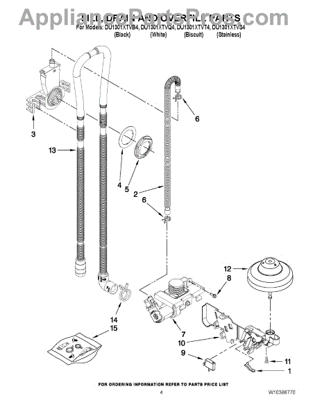 Parts for Whirlpool DU1301XTVQ4: 04 - Fill, Drain And Overfill Parts