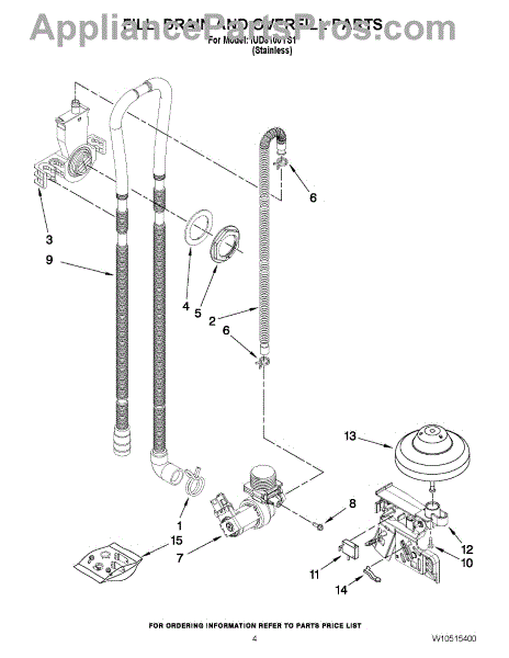 Parts for Whirlpool IUD8100YS1: 04 - Fill, Drain And Overfill Parts