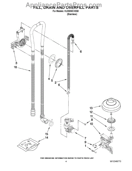 Parts for Kitchenaid KUDE50CXSS0: 04 - Fill, Drain And Overfill Parts
