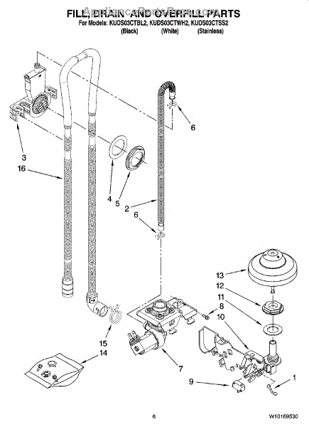 Parts for Kitchenaid KUDS03CTWH2: 06 - Fill, Drain And Overfill Parts