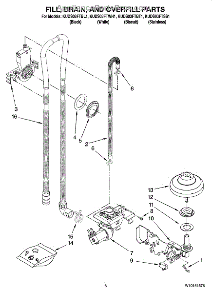 Parts for Kitchenaid KUDS03FTBT1: 06 - Fill, Drain, And Overfill Parts