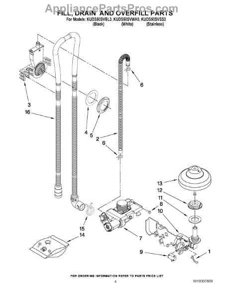 Parts for Kitchenaid KUDS50SVWH3: 04 - Fill, Drain And Overfill Parts