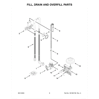 Parts for Whirlpool WDF341PAPT0: Fill, Drain And Overfill Parts