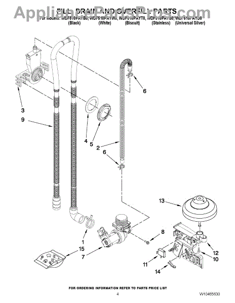 Parts for Whirlpool WDF510PAYB0: 04 - Fill, Drain And Overfill Parts