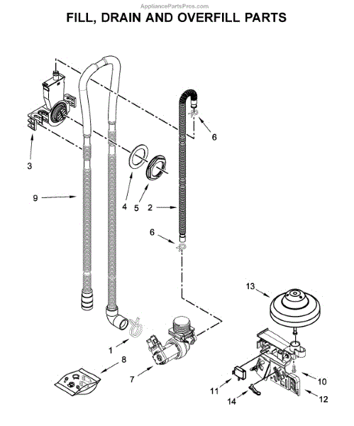 Parts for Whirlpool WDT720PADW3: Fill, Drain And Overfill Parts