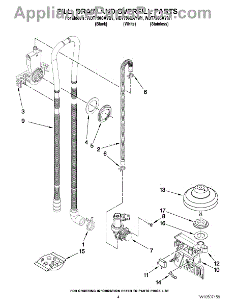 Carries wastewater from your dishwasher to the household drain. Replace if cracked, punctured, or leaking. Installs at pump outlet and drain connection.