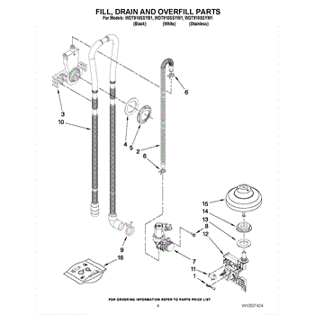 Parts for Whirlpool WDT910SSYB1: 04 - Fill, Drain And Overfill Parts