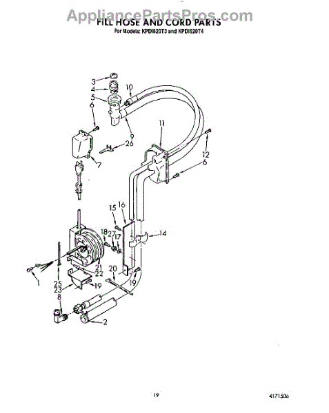 Parts for Kitchenaid KPDI620T4: 16 - Fill Hose And Cord Parts