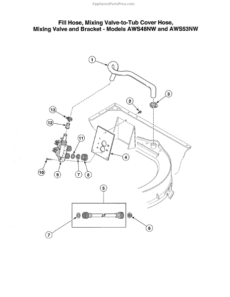 Parts for Alliance AWS76NW: Fill Hose / Valve-To-Tub Cover Hose Parts