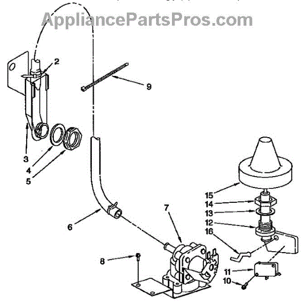 • Detects high water level and signals the washer control to stop filling