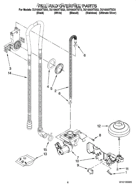 Parts for Whirlpool DU1055XTSB3: 06 - Fill And Overfill Parts