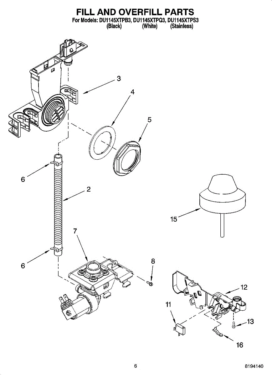 Controls water level and prevents overfilling in your dishwasher. Replace if you notice leaking or overflow issues. Confirm fit using your model number.
