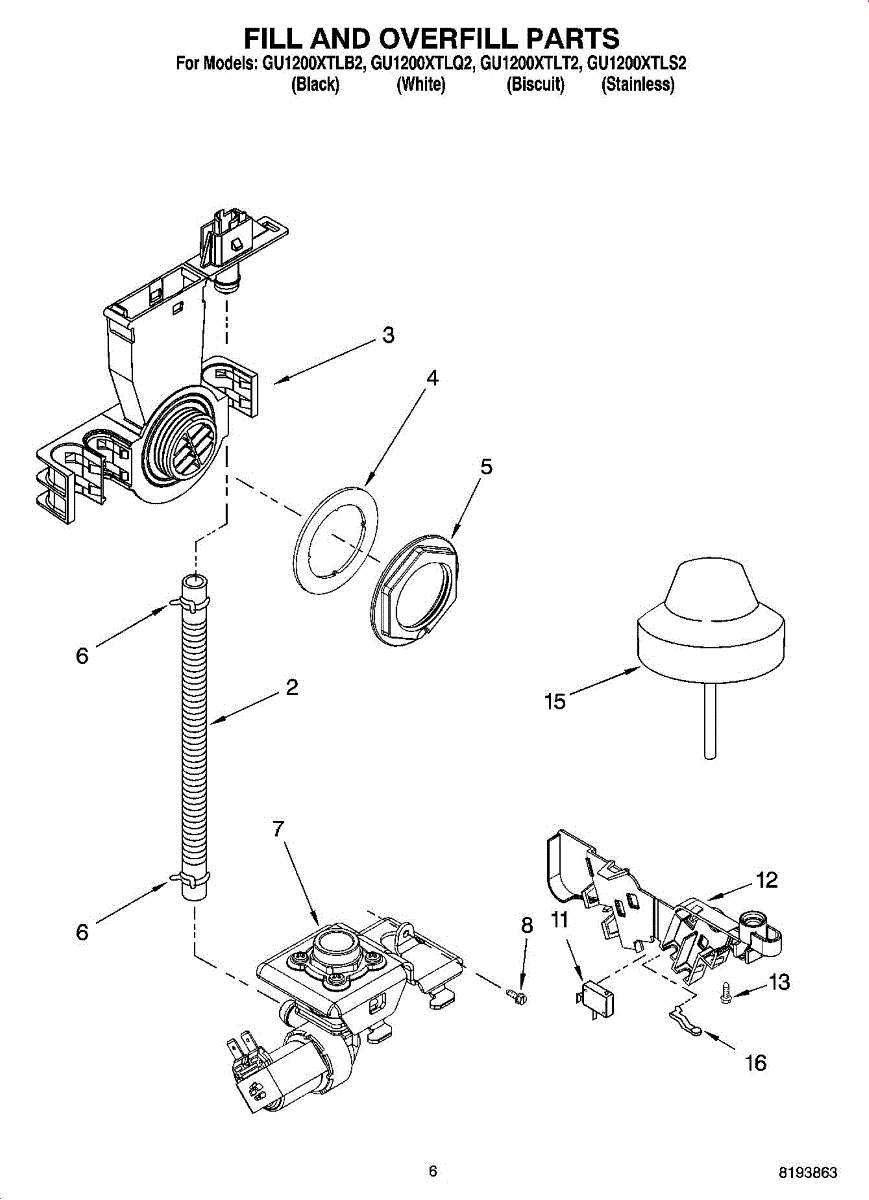 Parts for Whirlpool GU1200XTLB2: 06 - Fill And Overfill Parts