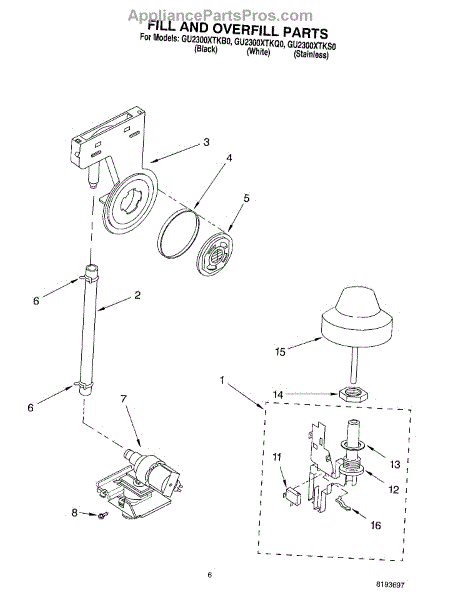 Parts for Whirlpool GU2300XTKS0: 06 - Fill And Overfill Parts
