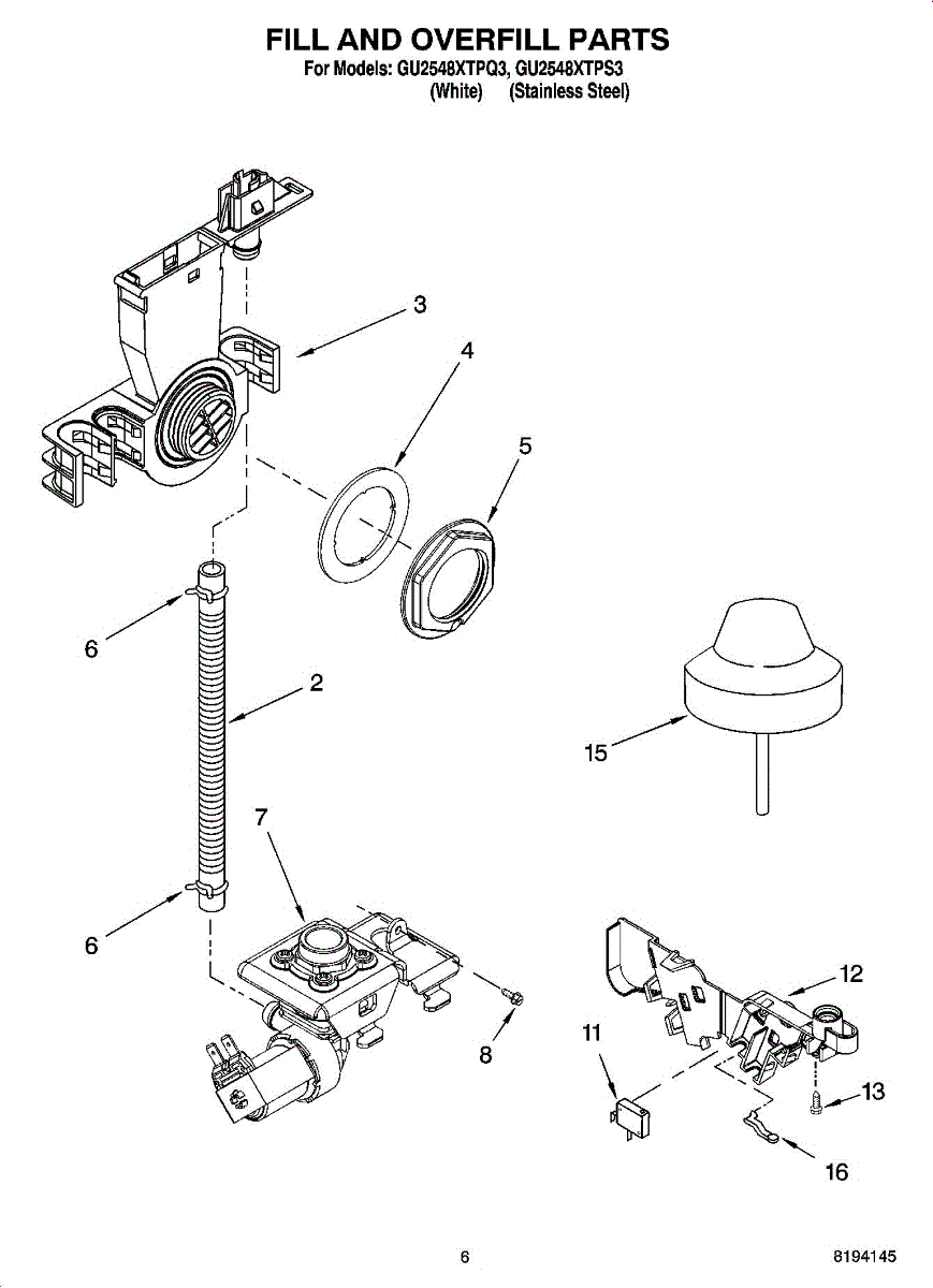 Parts for Whirlpool GU2548XTPS3: 06 - Fill And Overfill Parts