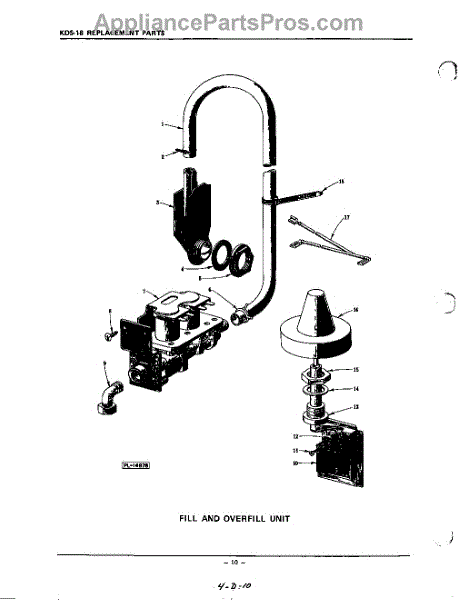 Parts for Kitchenaid KDS18: 10 - Fill And Overfill Parts