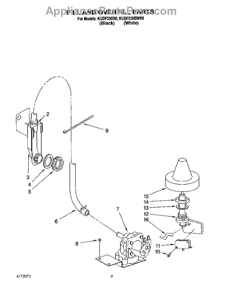 Causes of damage to the Float Switch Base Gasket often involve normal wear and tear, as the rubber or plastic material can degrade over time due to exposure to detergents, hot water, and the mechanical action of the float switch.