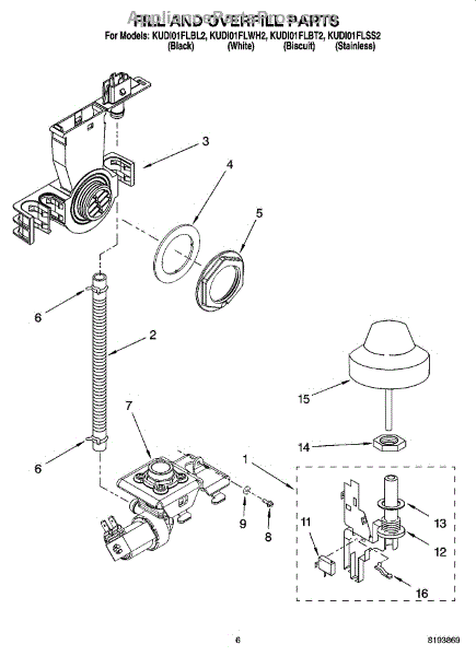 Parts for Kitchenaid KUDI01FLSS2: 06 - Fill And Overfill Parts