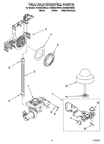 Parts for Kitchenaid KUDI02CRBL0: 06 - Fill And Overfill Parts