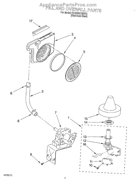 Causes of damage to the Float Switch Base Gasket often involve normal wear and tear, as the rubber or plastic material can degrade over time due to exposure to detergents, hot water, and the mechanical action of the float switch.