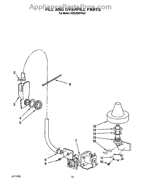 Causes of damage to the Float Switch Base Gasket often involve normal wear and tear, as the rubber or plastic material can degrade over time due to exposure to detergents, hot water, and the mechanical action of the float switch.