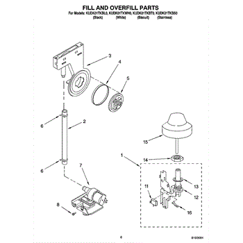 This overfill float and shaft assembly monitors the dishwasher's water level. As the tub fills, the float rises and triggers the float switch to shut off the inlet water, helping prevent overfilling and leaks.