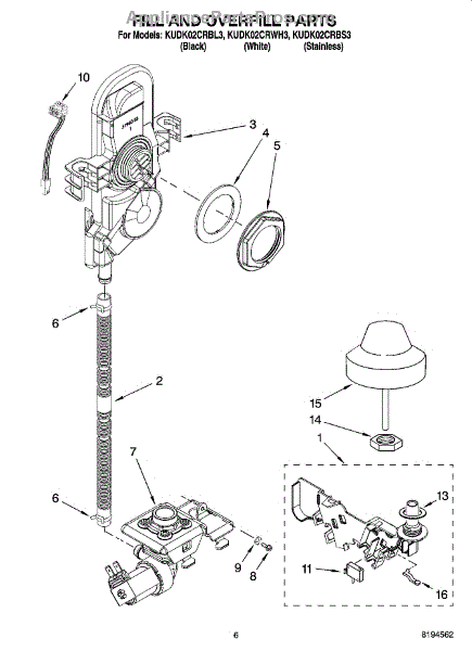 Parts for Kitchenaid KUDK02CRWH3: 06 - Fill And Overfill Parts