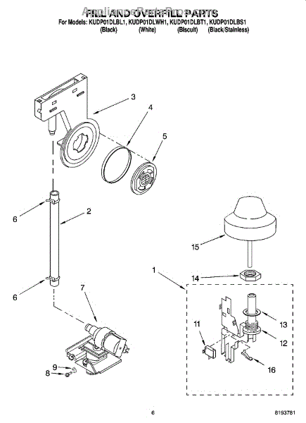 Parts for Kitchenaid KUDP01DLBL1: 06 - Fill And Overfill Parts