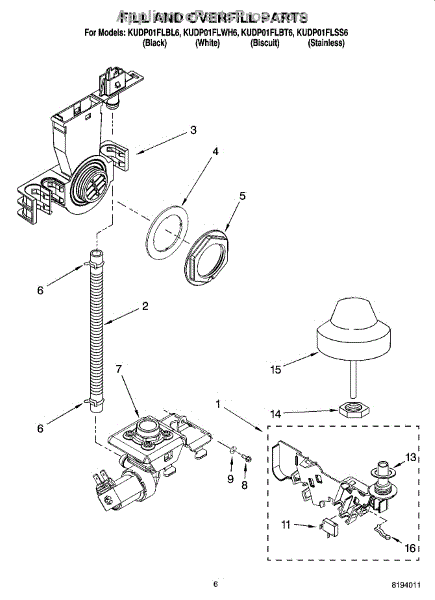 Parts for Kitchenaid KUDP01FLWH6: 06 - Fill And Overfill Parts