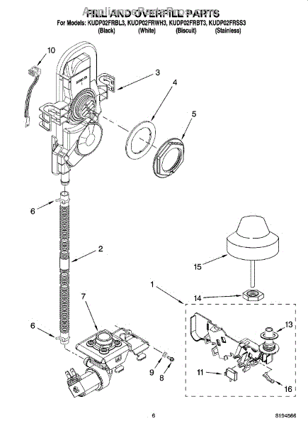 Parts for Kitchenaid KUDP02FRBT3: 06 - Fill And Overfill Parts