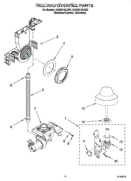 Parts for Kitchenaid KUDS01DLSP2: 06 - Fill And Overfill Parts