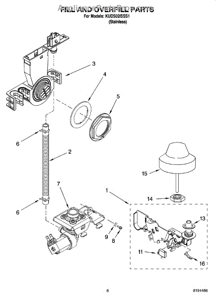 Parts for Kitchenaid KUDS02ISSS1: 06 - Fill And Overfill Parts