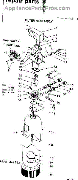 Parts for Kenmore 625.342142 (625342142, 625 342142): Filter Assembly Parts