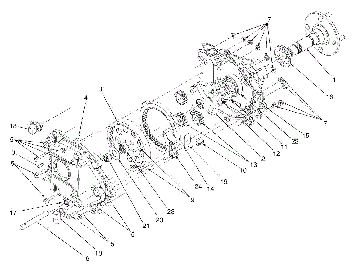 Axle housing assembly for zero-turn mowers. Mounts to the frame and secures the axle components. Replace if cracked, damaged, or structurally worn.