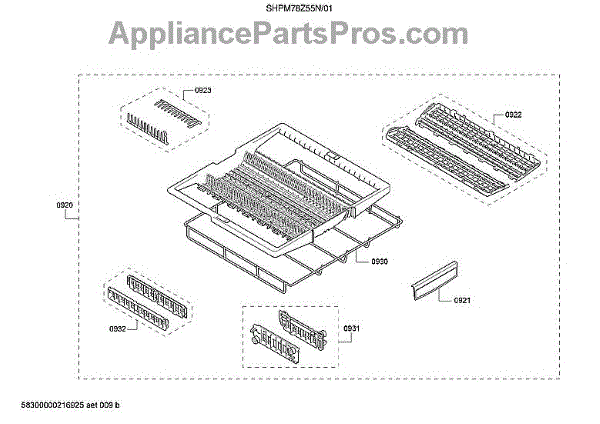 The Insert is an OEM replacement part for Bosch dishwasher racks. Situated at the base of upper racks, it supports and secures finer dishes during wash cycles. Proper insert function prevents damage to delicate glass and plates from shifting. Causes of a bad insert can include cracks or fractures from repeated loading/unloading of heavy or unstable dish loads. Detergent and heat exposure causes flexible plastic to warp and sag over many years. Symptoms include: