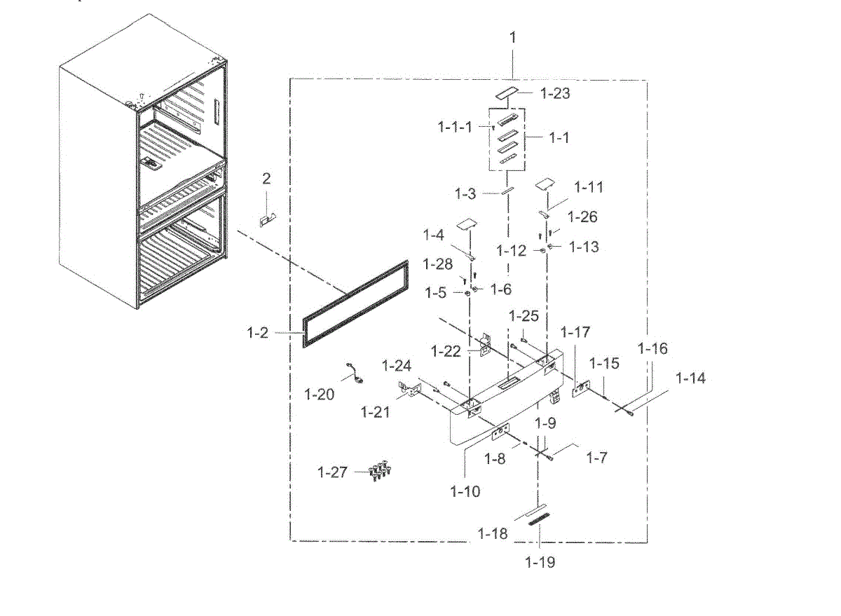 Secures refrigerator door handle to the door panel. Replace if plate is cracked, stripped threads prevent handle attachment, or handle loosens repeatedly.
