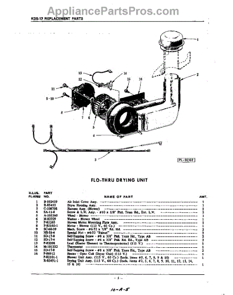 Parts for Kitchenaid KDS17: 05 - Flo-Thru Drying Parts