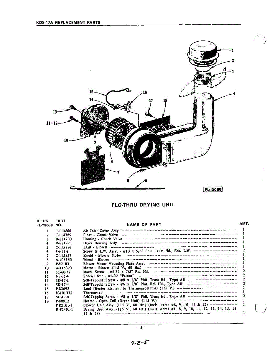 Parts for Kitchenaid KDS17A: 05 - Flo-Thru Drying Parts