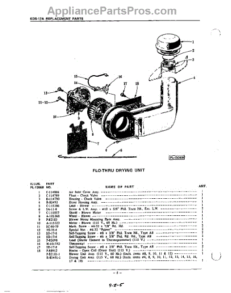 Parts for Kitchenaid KDS37A: 05 - Flo-Thru Drying Parts