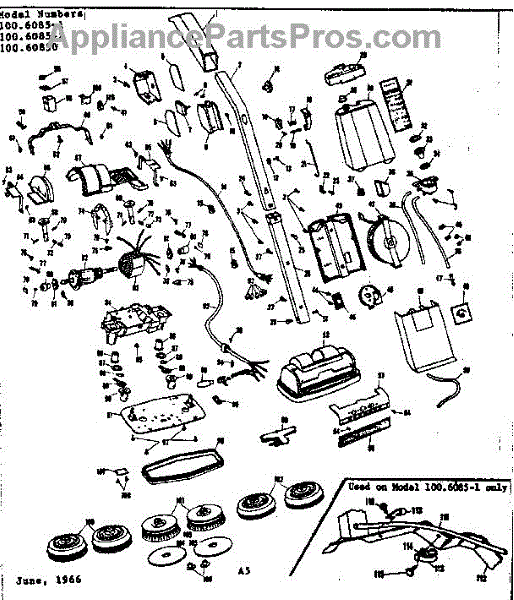 Parts for Kenmore 100.6085-2 (1006085-2, 100 6085-2): Floor Polisher Parts