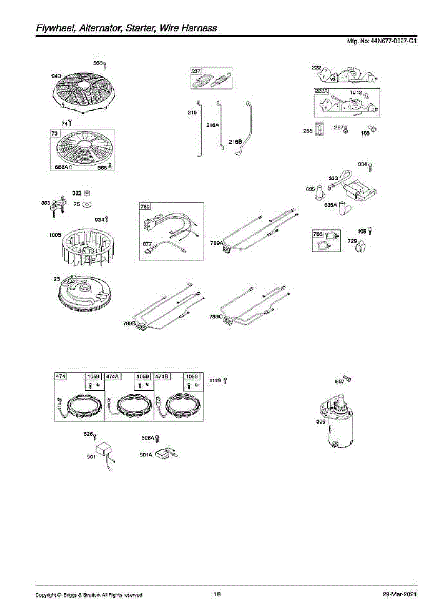 Parts for Briggs & Stratton 44N677-0027-G1: Flywheel / Alternator / Starter Parts