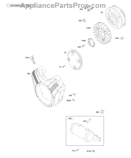 Parts for Briggs & Stratton 389445-0115-E1: Flywheel, Blower Housing, Muffler Parts