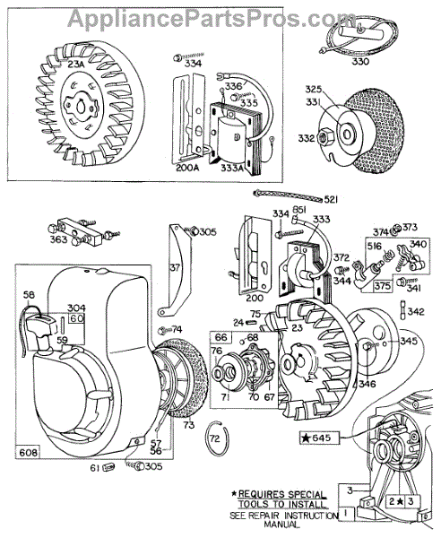 Parts for Briggs & Stratton 061101-9405-80: Flywheel, Blower Hsg, Elect Parts