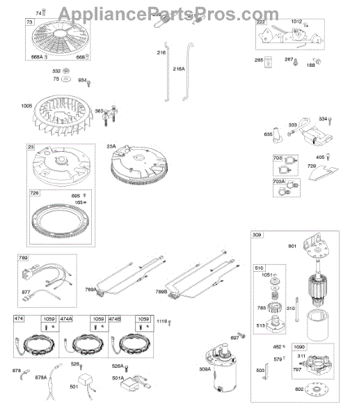 Parts for Briggs & Stratton 44R877-0008-G1: Flywheel, Controls, Wire Harness, Alternator, Starter Parts
