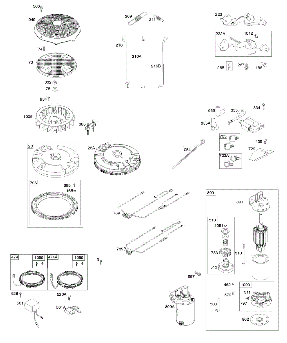 Parts for Briggs & Stratton 44S777-0007-G1: Flywheel, Controls, Wire Harness, Alternator, Starter Parts