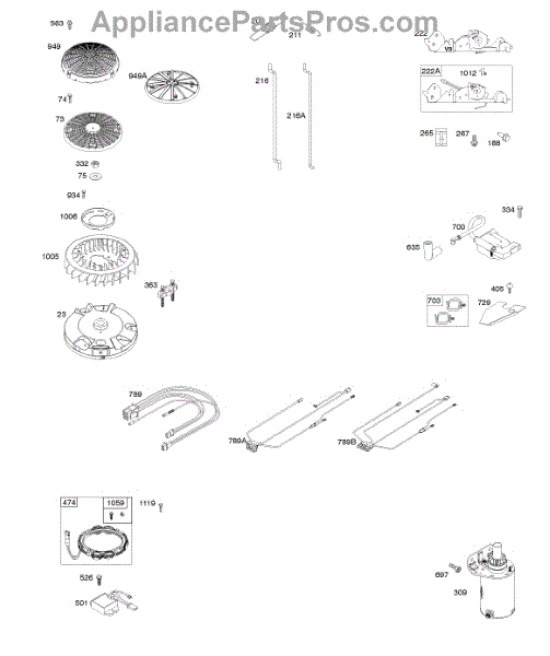 Parts for Briggs & Stratton 44T977-0003-G1: Flywheel, Controls, Wire Harness, Alternator, Starter Parts