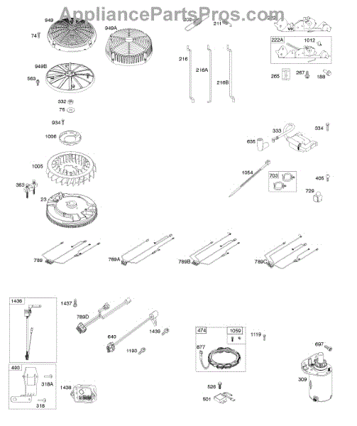 Parts for Briggs & Stratton 49T877-0006-G1: Flywheel, Controls, Wire Harness, Alternator, Starter Parts