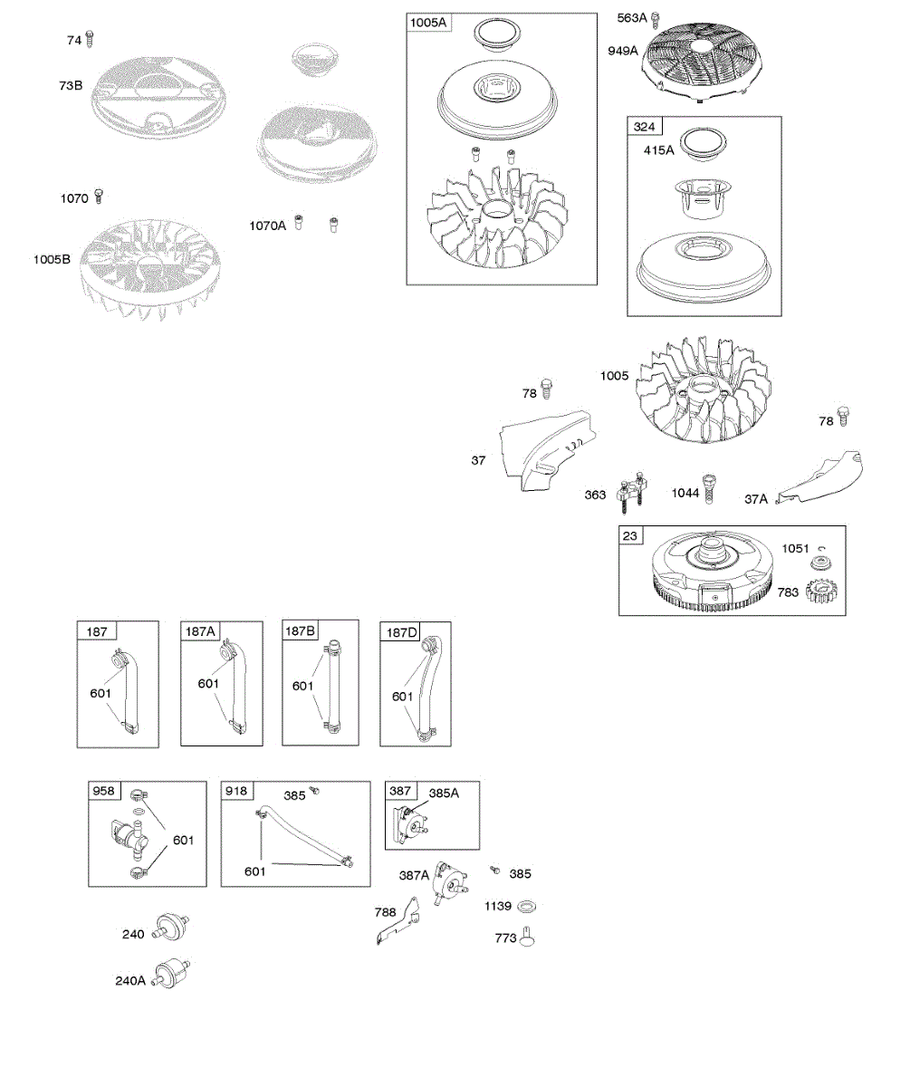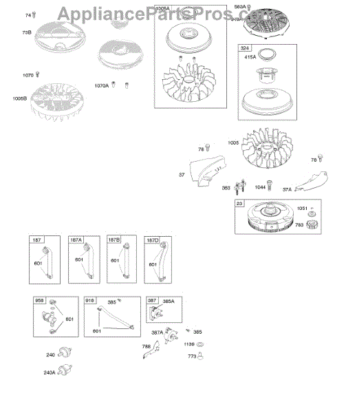 Parts for Briggs & Stratton 31A677-0036-G1: Flywheel, Fuel Supply, Governor Spring Parts