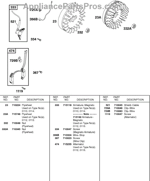 Parts for Briggs & Stratton 187437-0112-B1: Flywheel, Ignition Parts