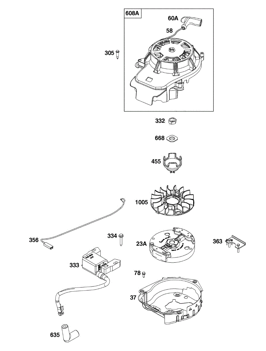 This replacement rewind starter, sometimes called a recoil starter, features a pull handle and the assembly used to replace a rewind starter that is not functioning properly on small engines. When pulled, the starter engages the flywheel and other elements in the engine to get it started and running. There are many reasons that the rewind starter could need to be replaced. Parts of the assembly could become damaged, or the starter rope could become frayed and break. The handle could break over time, as well. Regardless of the problem, it is always best to replace the rewind starter at the first signs of trouble. When it is not working correctly, it can be hard to start the engine. Depending on the severity of the problem, it may not be possible to start the engine at all. The genuine OEM replacement rewind starter is sold individually and can be used with lawn mowers and other types of small engines that use a pull starter. It is compatible with many models from Briggs & Stratton. Owners should always check to be sure they are choosing the correct starter for their machine before buying.